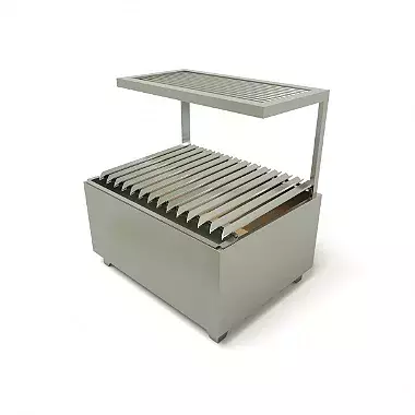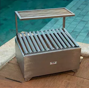 Produzida 100% em Inox de alta espessura com o interior revestido com tijolos refratários para trazer durabilidade e caloria da brasa.